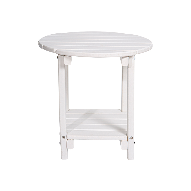 Esta mesa redonda blanca está fabricada en polietileno de alta densidad (HDPE), con unas dimensiones totales de 18 cm de largo, 18 cm de ancho y 18 cm de alto. La superficie de la mesa presenta una textura de veta de madera clara y realista, construida a partir de múltiples listones paralelos con bordes redondeados suaves y líneas fluidas, creando un atractivo visual refinado y cómodo. Debajo de la mesa hay un estante de almacenamiento cuadrado hecho de listones blancos a juego, que mantiene un estilo de diseño consistente y al mismo tiempo mejora la capacidad de almacenamiento y la funcionalidad. El producto incluye 304 tornillos de acero inoxidable y un manual de instrucciones para un fácil montaje y desmontaje. El embalaje utiliza cajas de cartón reforzadas de doble pared y ha pasado pruebas de caída para garantizar un transporte seguro.
